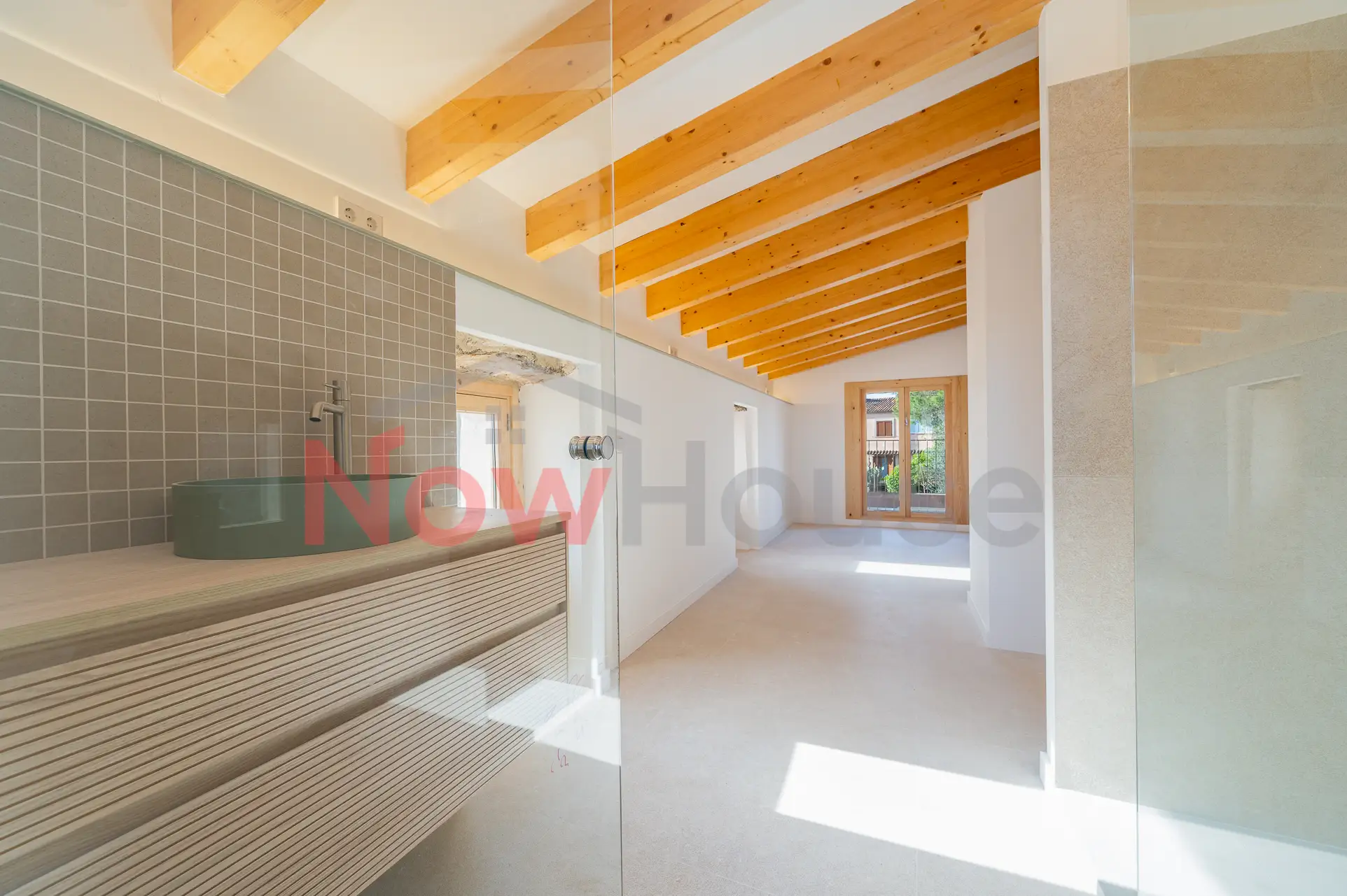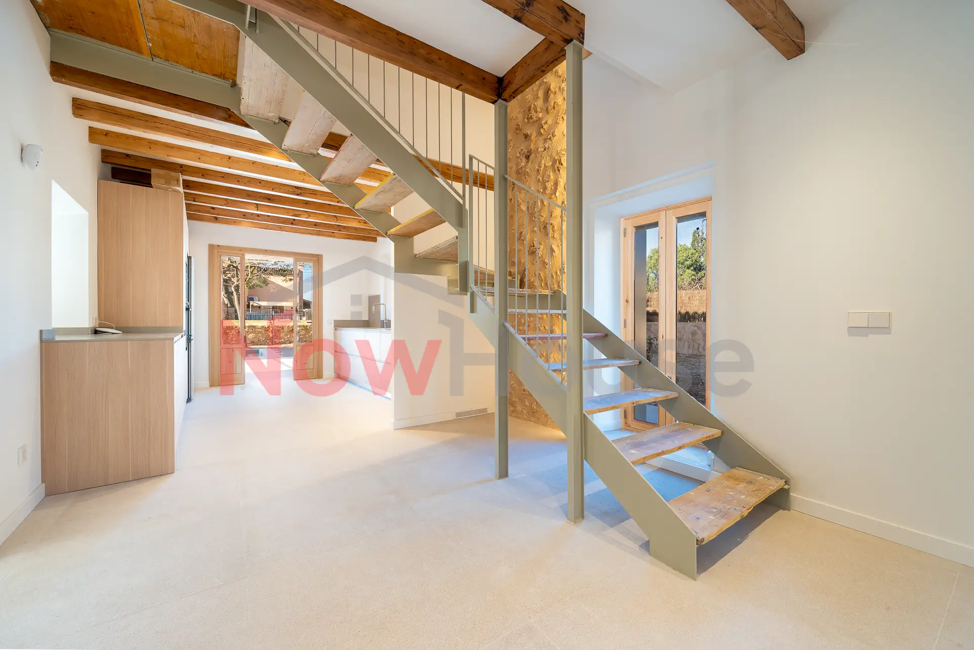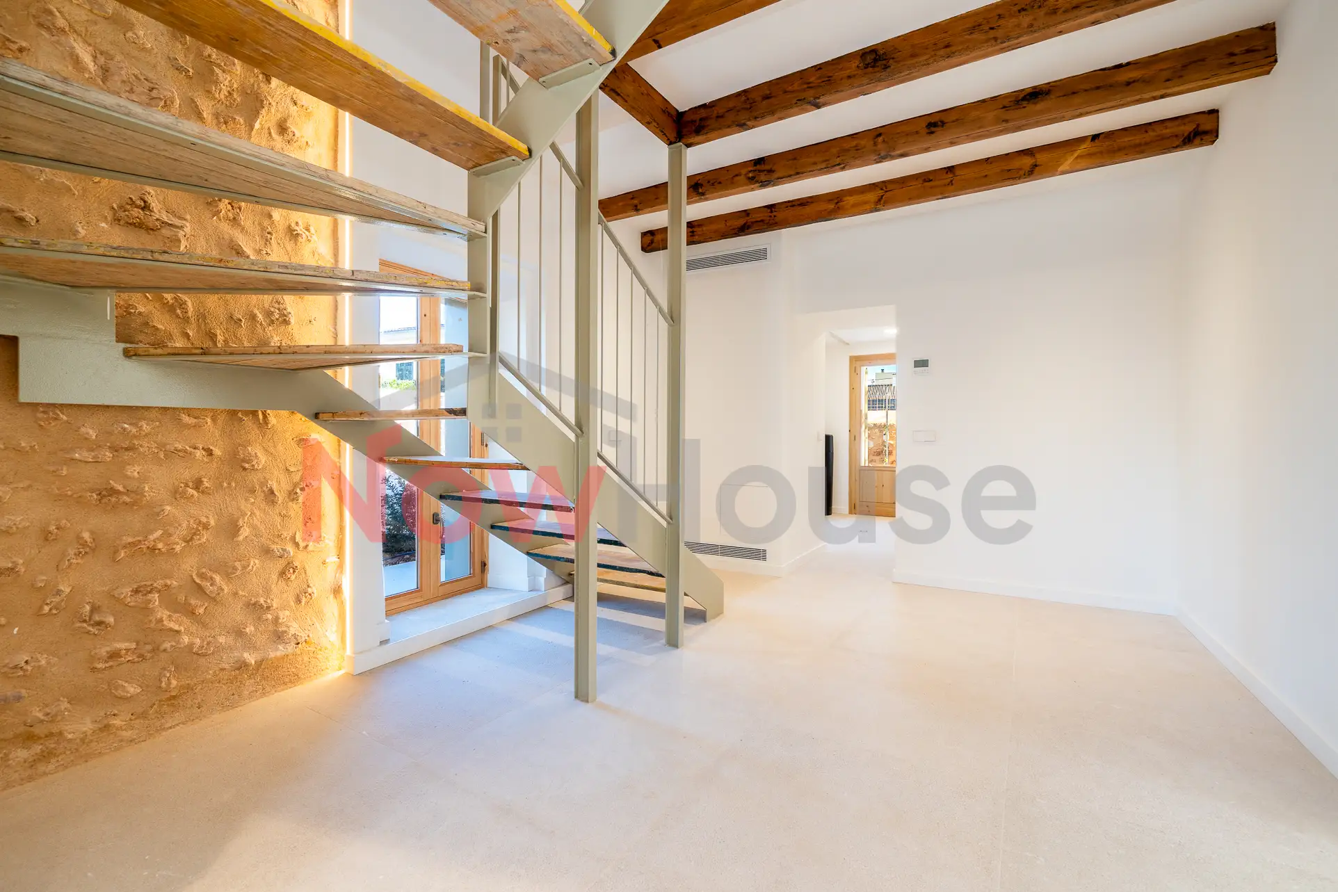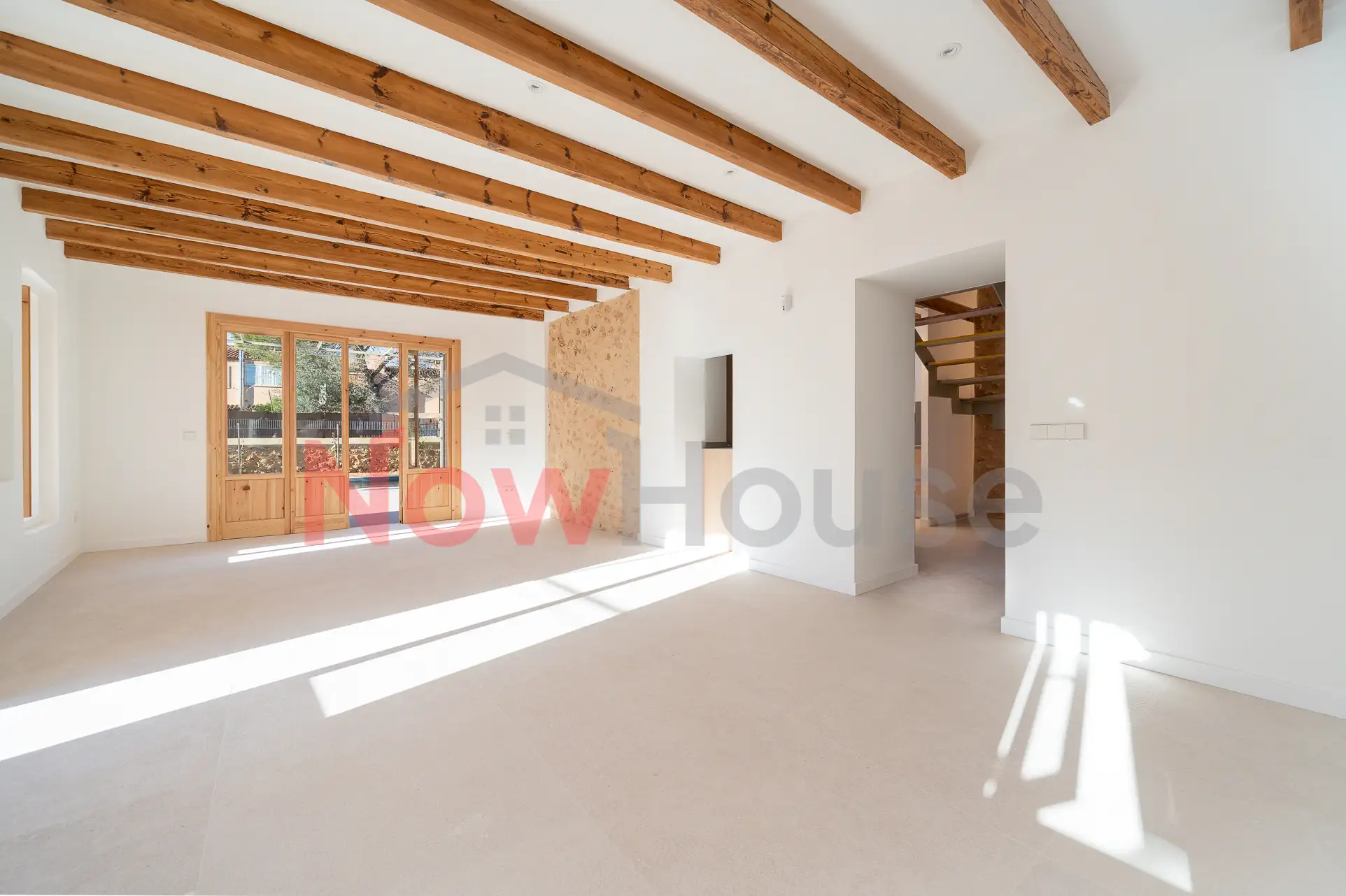 Una vivienda completamente reformada que conserva el carácter mallorquín de su construcción original, integrando materiales nobles como la piedra natural y la madera, y combinándolos con una estética actual en tonos blancos y madera que potencia al máximo la luz natural y la sensación de amplitud.